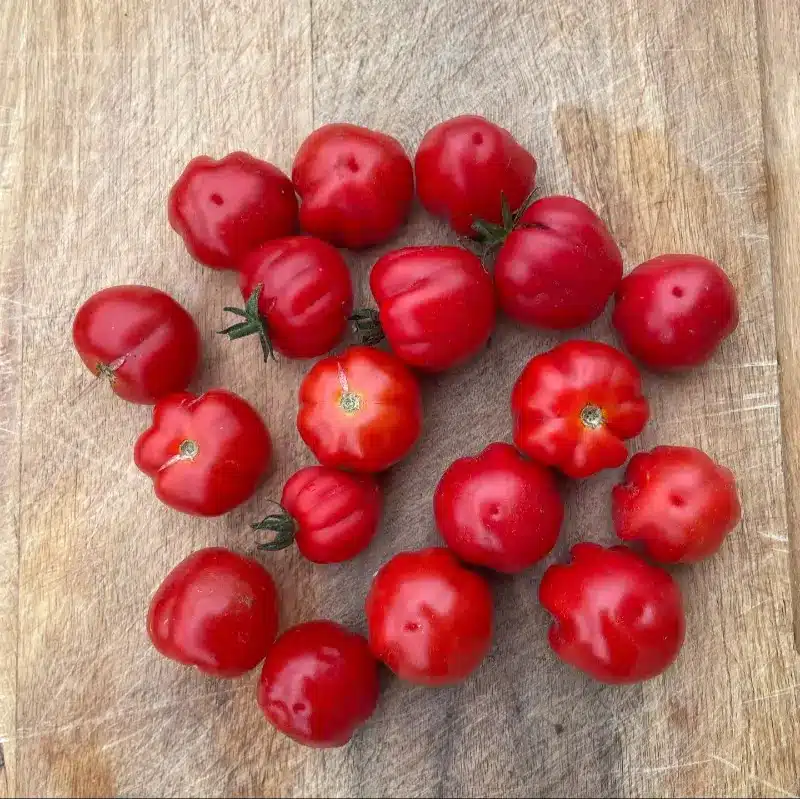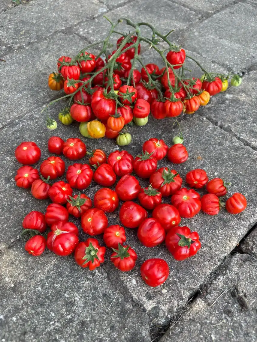 Dyrket sorten på friland i højbed, hvor den er ekstremt livskraftig og højtydende. En multiflora som giver små ribbede røde tomater der vejer ca. 25-30 g På en gren er der mange stilke og der er ekstremt mange tomater på hver stilk. De kan sidde længe på planten som moden, uden af falde af- rever ikke i regnvejr og har en meget meget høj modstandskraft overfor sygdom. Smagen vil vi beskrive som syrlig, frisk og velsmagende. Historien bag sorten. Celina Zetterstrøm fortæller om sorten: Vi har for nogle år været på Samsø for at holde er frøsamlerkursus for en del interesserede på øen. Vi kom forbi Ballen havn og der købte vi forsyninger til frokost. Deriblandt nogle søde cherry tomater som var røde og meget velsmagende. Celina tog frø af dem og dyrkede flere planter de følgende år. Et år kom der 2 slags en multiflora med røde plisserede tomater (lige som den tomat som hedder Accordeon) og en med almindelige lange røde klasser. De voksede altid på friland ( 2- 2.5 m høje) hos Celina. Såvidt vides er sorten ikke 100 % stabil endnu.”
