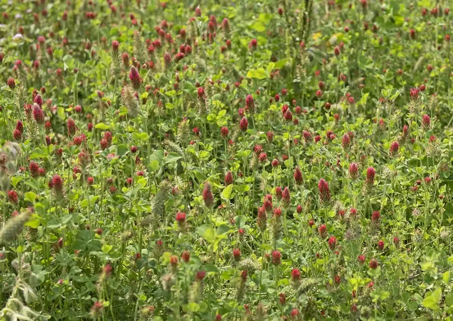 Dekorativ grøngødningsplante, der også tiltrækker bestøvende insekter til din have. Kvælstofbindende og jordløsnende. Kraftige og frodige planter med masser af blodrøde, spidse kløverblomster.