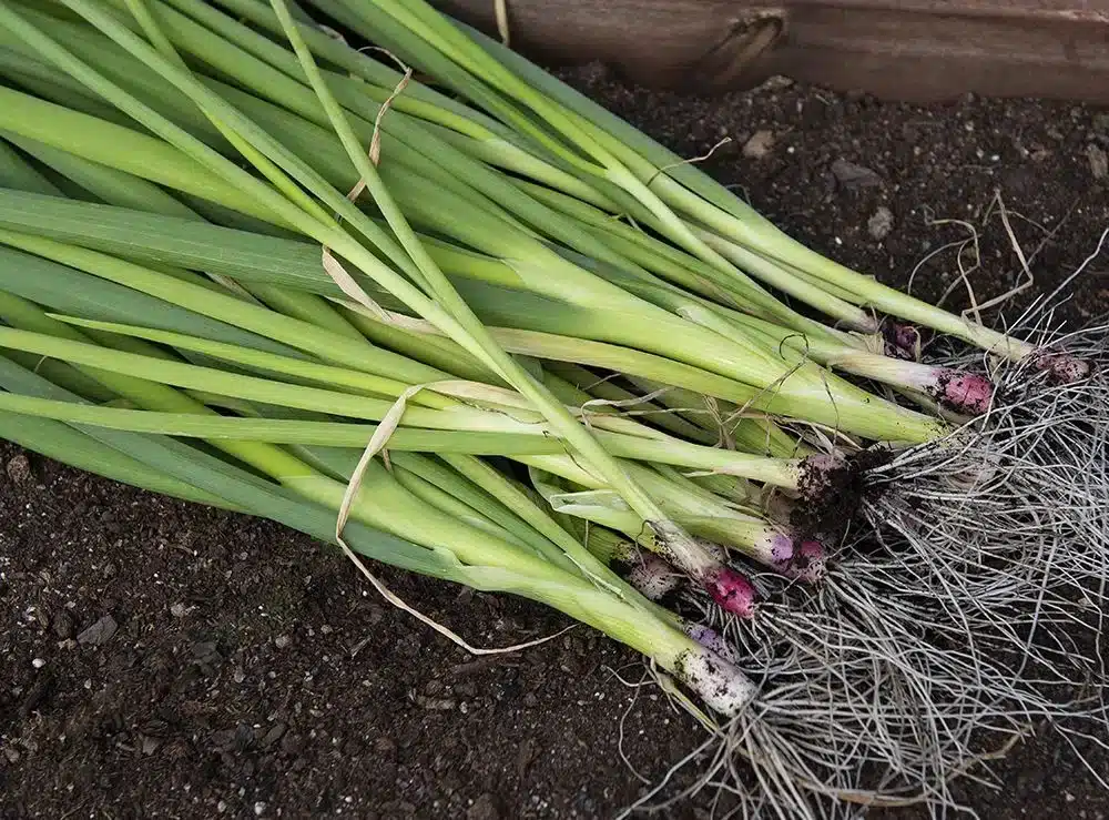 Grøn løgtop med lille løgdannelse i bunden i mere eller mindre røde nuancer. Hurtigtvoksende og pålidelig forårsløg. Ru og sprød, hele planten kan bruges i salater, wok, madlavning m.m.