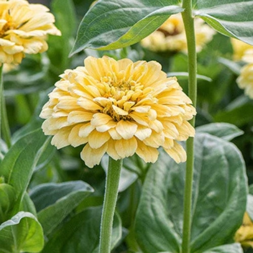 Kulturarv. Fra 1955. Dahlie-blomstrende. Ensfarvede halv- til heldobbelte, mildt smørgule blomster på kraftige stængler. Anvendelig og letdyrket til bede og snitblomster.