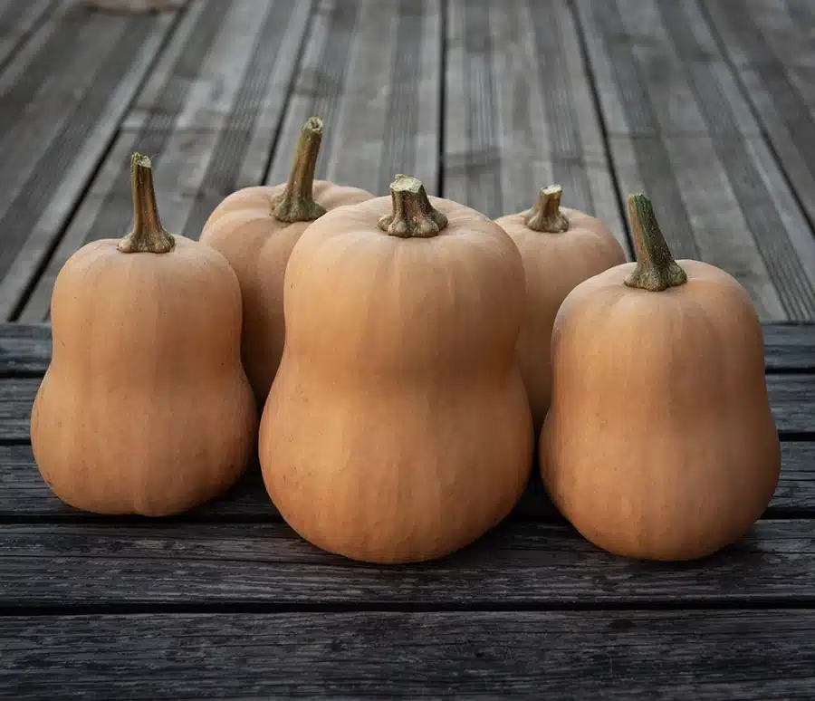 Pæreformede, bronzefarvede frugter på ca. 1-2 kg. Udsøgt, orange frugtkød med sød smag. Perfekt størrelse til at ovnstege og servere som tilbehør. Rankelængde 1-2 meter. Meldugresisten