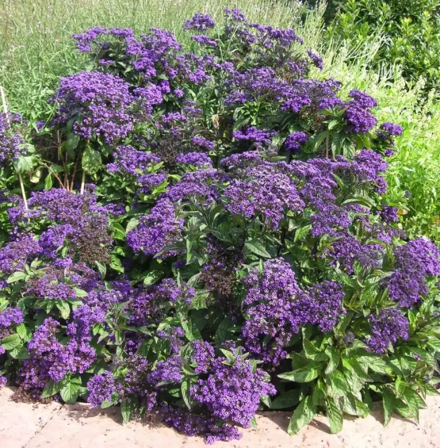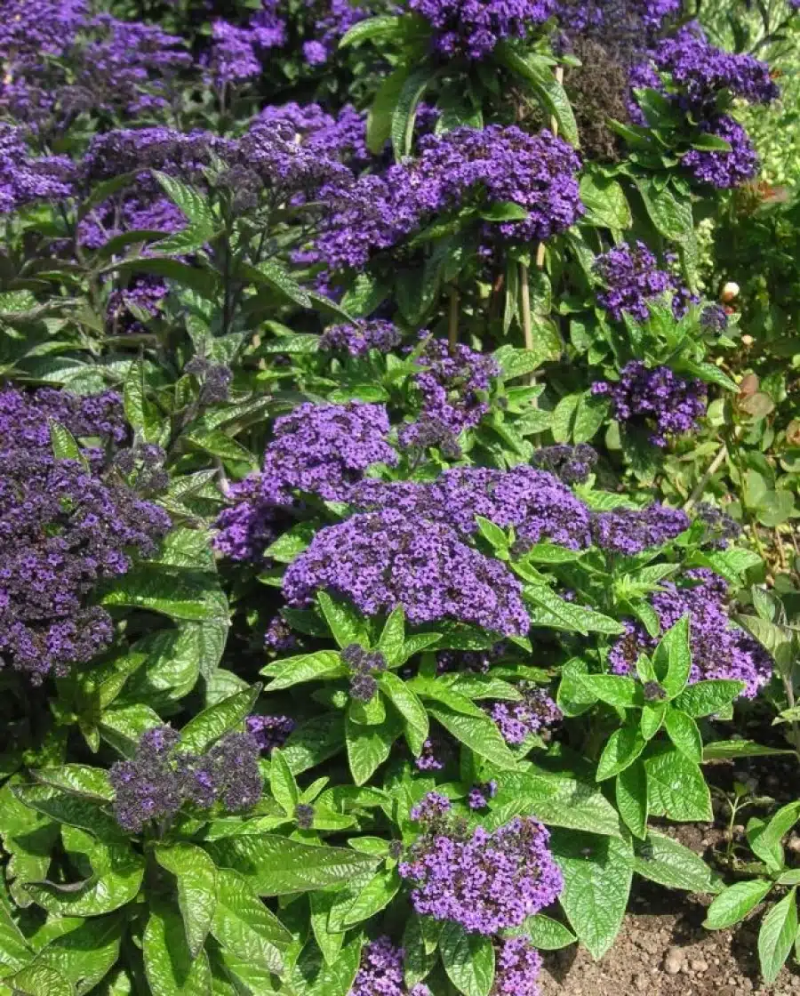 (Heliotropium arborescens) – Vidunderlig duftende plante med blålilla, tætte blomsterklaser. Kompakt vækst, rigtig fin til blomsterkasser og blomsterbede. Kan med fordel placeres foran indgangen eller på terrassen.