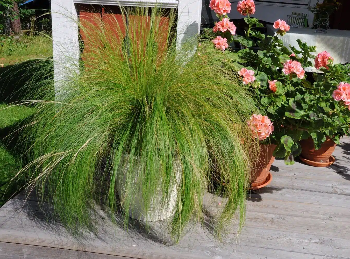 Opretstående prydgræs med smalle, grønne blade og silkebløde, grønne cilia, der falmer til gyldengul. Danner tætte, fine totter meget dekorative i potter, kasser og hængende ud over kanter. Kan også tørres.
