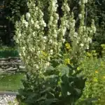 (Verbascum phlomoide) – Høje spir med store, hvide blomster med et gult indre. Sølvgrå, dunede bladrosetter der breder sig ud. Statelig plante, der placeres solitært eller i grupper med tre, for at opnå bedste effekt. Selvsår sig nemt.
