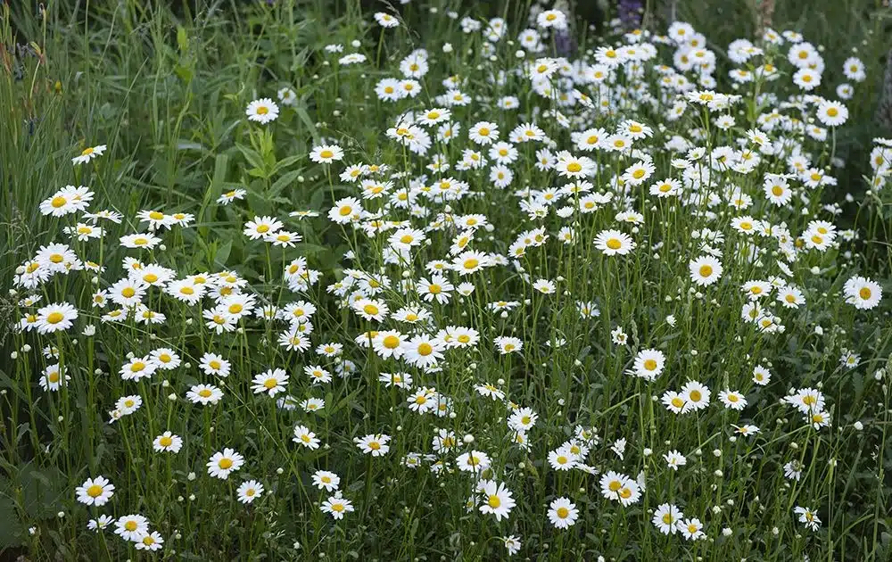 Leucanthemum vulgare – Vild form. Gammel plante i nordisk folkeovertro. Blomsterkurve, 3-4 cm store, med hvide kronblade og gul midte. Afrundede rosetblade og takkede, lange stængelblade. Forekommer på enge, lysninger, marker og vejkanter.