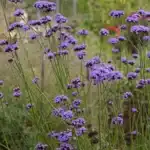 (Verbena bonariensis) – En mere kompakt variant af den populære kæmpe verbena. Tætte blomsterstande i intens purpurviolet fra midsommer til frosten kommer. Tiltrækker bier og sommerfugle og spreder en subtil duft tidligt om morgenen og om aftenen. Fin i både krukke og blomsterbed.
