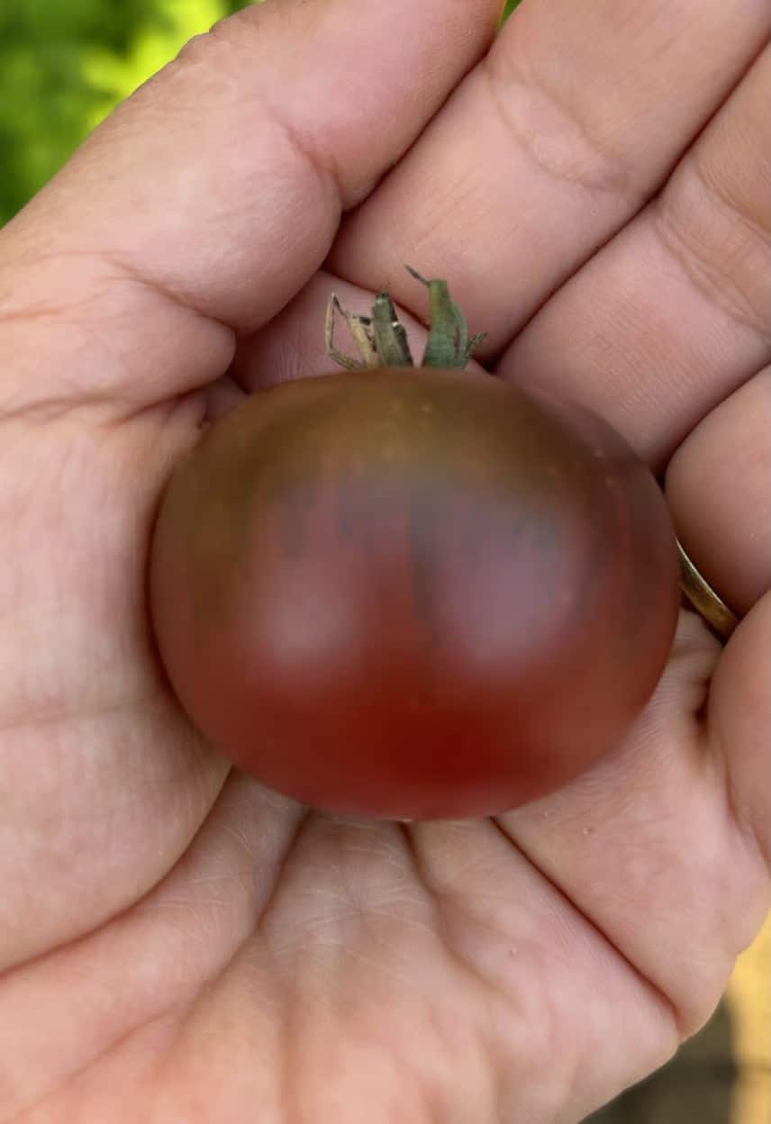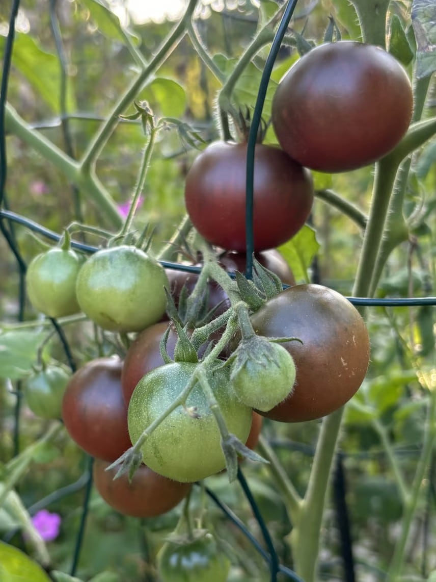 Karma Purple er en multifloratomat som laver klaser med op til 20 stk tomater på mellem 15 og 25 gram. Nogle af tomaterne (ofte de første planten producerer) er som små bøftomater og ellers har de en størrelse som golfkugler.