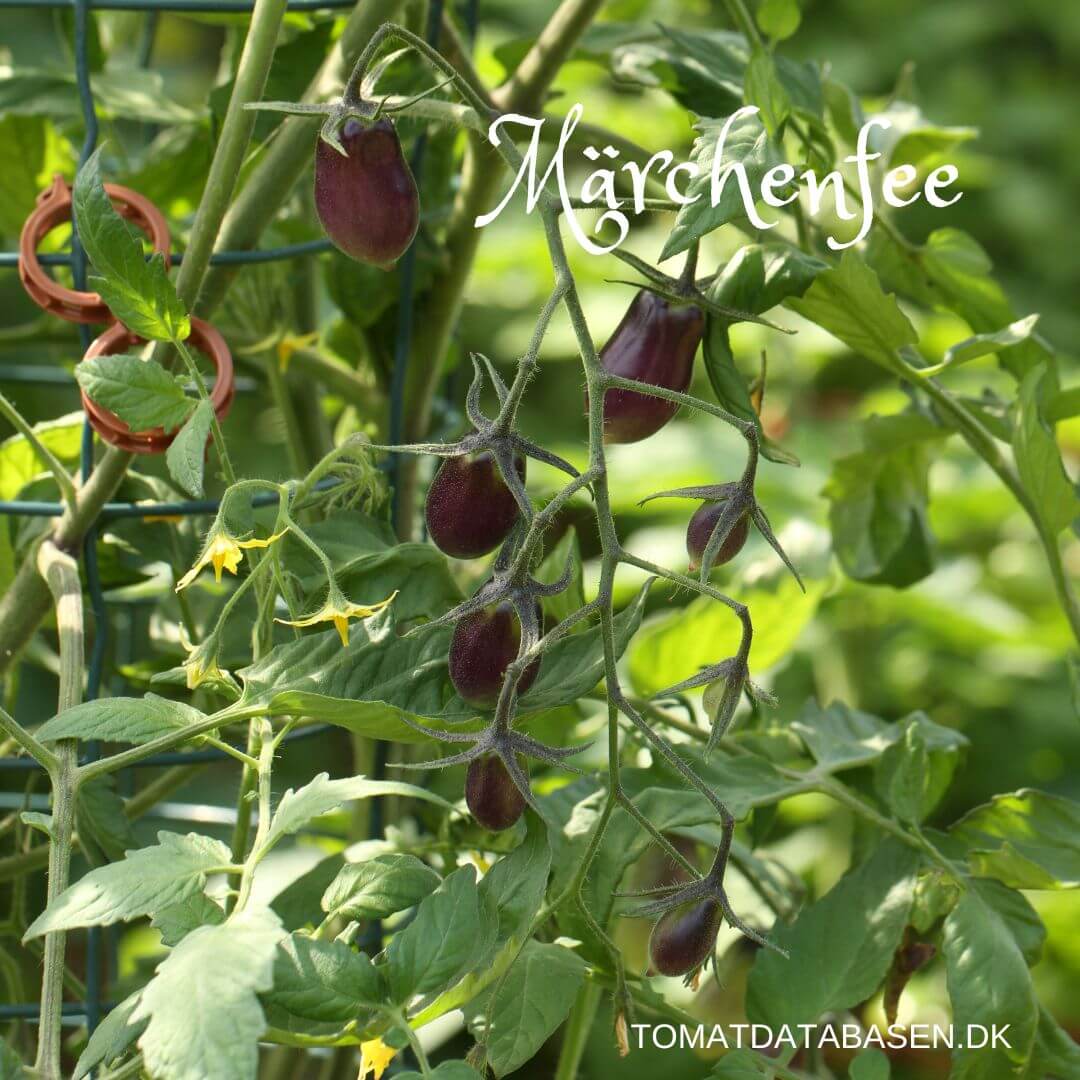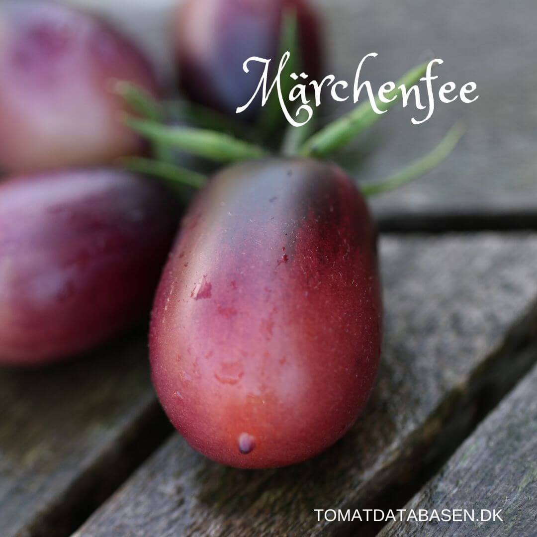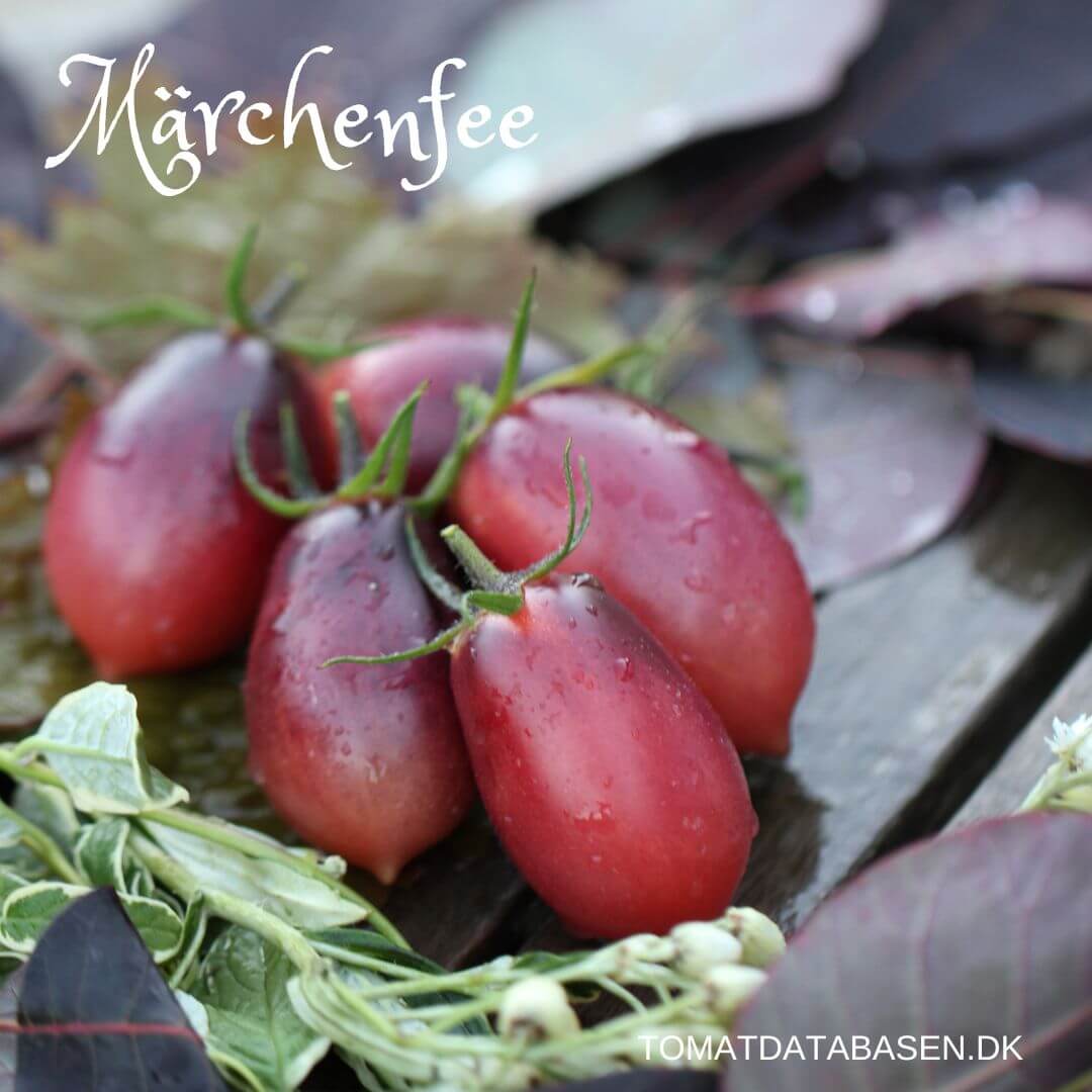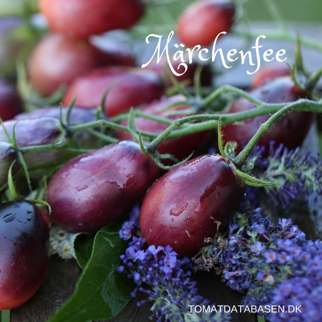 Märchenfee er usædvanlig smuk og produktiv. Tomaterne starter som lilla og modner ud i smuk pink med lilla skuldre. Tomaterne er pæreformede og planten er en multiflora, hvilket betyder at den danner store klaser me mange tomater.