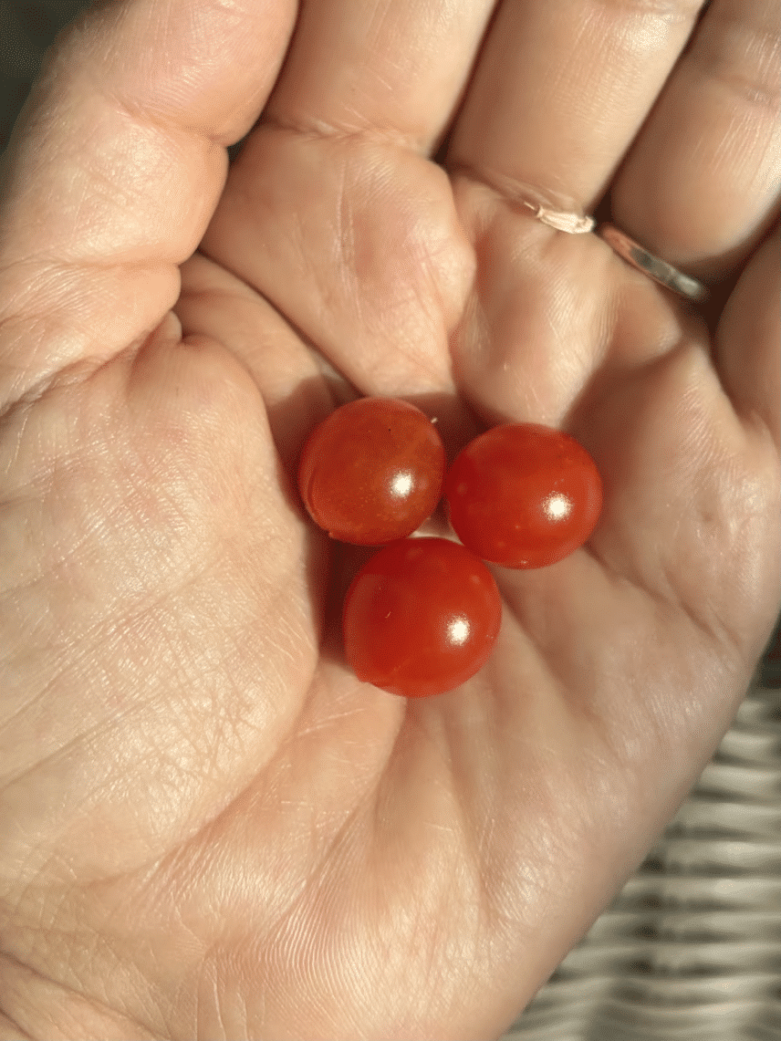 smagen er som en god rød cherrytomat, ikke super sød, men sprød. Det er en lækker lille sag.