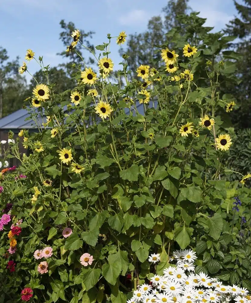 En yndig solsikke med solgule ca. 8 cm store blomster på korte stængler, der er rigtig flot i blandede sommerbuketter. Buskede, flergrenede planter, der blomstrer rigeligt hele sommeren. Perfekt plante til baggrunds- eller midterplacering i blomsterbede og blomsterkasser.