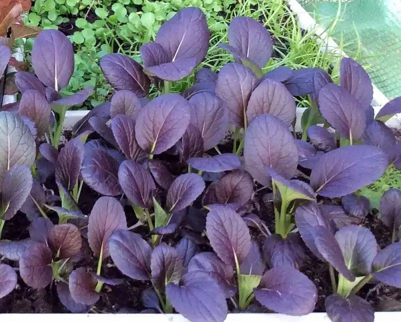Brassica rapa (Chinensis-gr.) – Sellerikål. Bladgrøntsag. De korte grønne stængler og blade med røde tråde har en smag, der minder om salatkål. Unge blade kan spises som babyblade, mens de grovere blade bedst kan steges eller dampes. Meget let at dyrke og hurtigtvoksende.