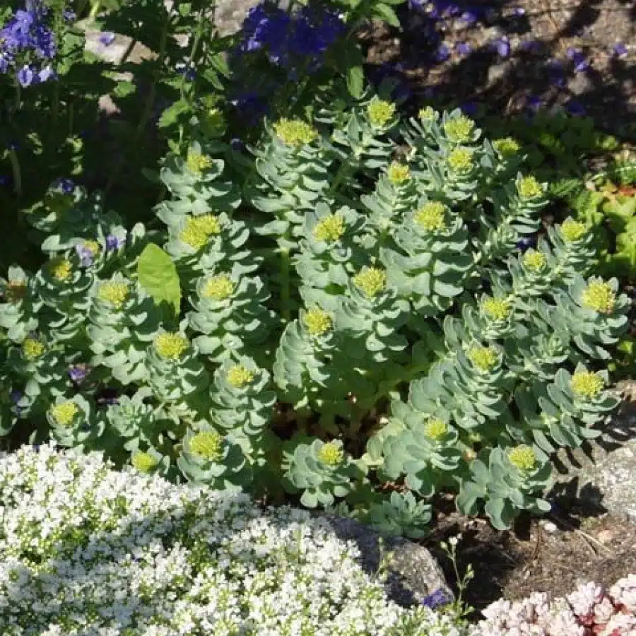 Gule kompakte blomster øverst. Opretstående stængler, der ikke forgrener, med blågrønne skålformede blade. Anvendtes tidligere af piger for at se, om deres elskede var tro mod dem. Den tørrede, rosenduftende rod tillægges stor magi i den ældre folkemedicin. Velegnet til stensætninger. Forekommer på klippehylder, skrænter, vandløbskanter og flodbredder.