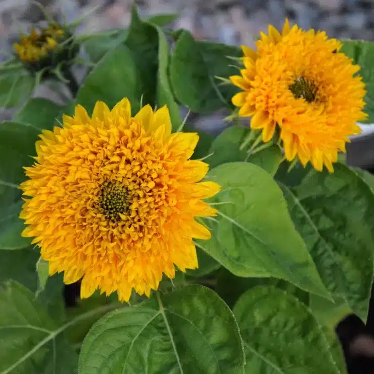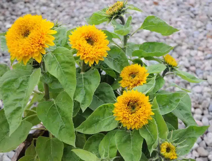 Store, tætte, dobbelte knaldgule blomster på flergrenede planter. Hver plante giver flere blomster, der står i meget lang tid. Fin til blomsterbedet, krukker og som snitblomst.