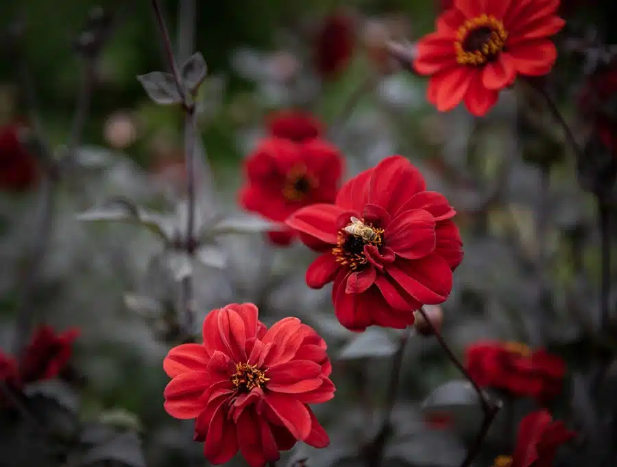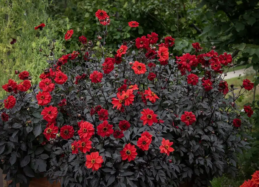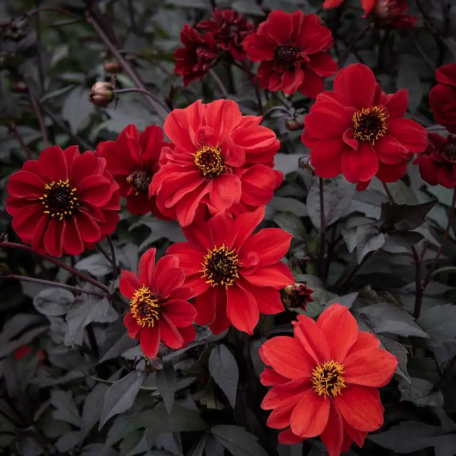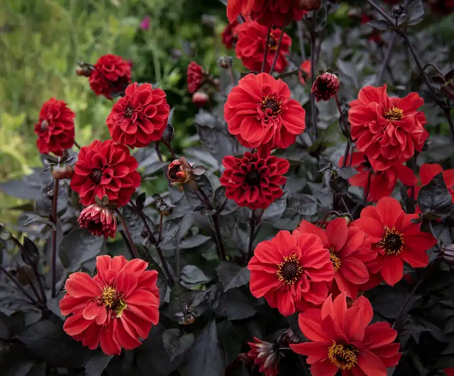 Enkle til fyldte, lysende rubinrøde blomster med mørk midte over et fortryllende grønsort løv i smuk kontrast. Lejlighedsvise afvigelser kan forekomme. Meget rigtblomstrende med busket og velforgrenet vækstform. Udsøgt indslag i bede, krukker og plantekasser.